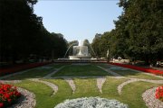 في القرن 19 تحولت إلى حديقة رومانسية على الطراز الإنجليزي، لكنها دمرت خلال وبعد انتفاضة وارسو، تم بناؤها جزئيا بعد الحرب العالمية الثانية، تبدأ الحديقة من الواجهة الخلفية للقصر، وتحيط بها زقاق طويل مع العديد من المنحوتات، والطريق الرئيسي يؤدي مباشرة إلى القصر.