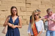 واستهلت ملكة جمال بلجيكا، زيارتها للأقصر بجولة وسط معابد الكرنك الفرعونية الشهيرة، والتقطت الصور التذكارية مع المصريين والسياح الأجانب.
