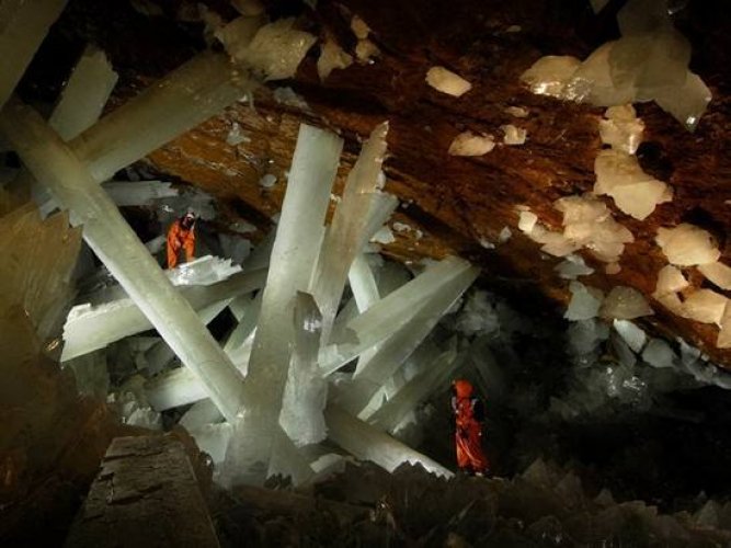 كهف البلورات الضخمة Cueva de Las Espadas هو واحد من أكثر كهوف المكسيك إثارة، تم اكتشافه عام 2000م على عمق 300 متر في منجم نايكا بمدينة نايكا بصحراء تشيهواهوا المكسيكية، و عرف كهف البلورات العملاقة بهذا الاسم نظرا لاحتوائه على أكبر بلورات كريستالية طبيعية في العالم، حيث يصل طول هذه البلورات الضخمة لحوالي 12 متر، ويصل وزنها الى 55 طن، ويعتقد العلماء والباحثين أن كهف البلورات العملاقة تشكل طبيعيا منذ آلاف السنين نتيجة النشاط البركاني الذي ملأ جبل نايكا بمادة الأنهيدريت.