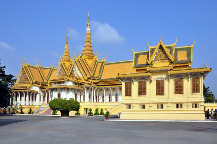 القصر الملكي في كمبوديا هو مثال رائع لعمارة الخمير مع لمسة فرنسية طفيفة يضم تخطيطه الجدار الدفاعي وقاعة العرش ومعبد بوذا الزمردي والأبراج البوذية.